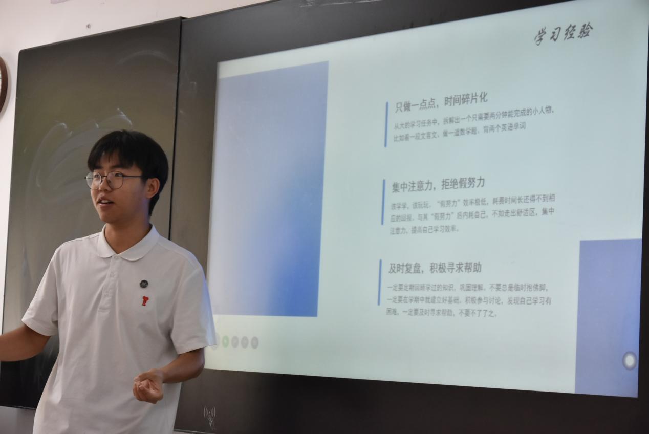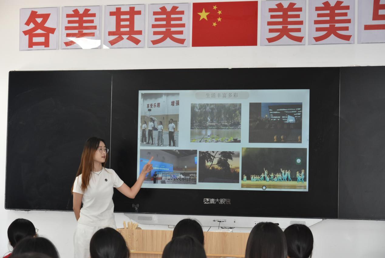 会议第四项,李昱就本次暑假社会实践活动情况作介绍。他表明身为本次实践队伍的指导老师,本次宣讲实践活动是意义非凡的,中央民族大学附属中学雄安校区汇聚了容城县的优秀学生,并有76名河北工业大学的校友。实践队成员给即将升入高三的孩子介绍河北工业大学,